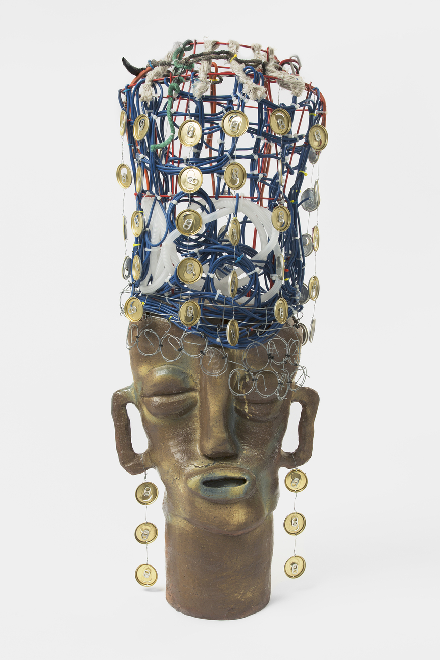 LEILAH BABIRYE, “Senga Muzanganda (Auntie Muzanganda),” 2020 (glazed ceramic, wire and found objects, 55 x 22 1/2 x 17 1/8 inches / 139.7 x 57.15 x 43.51 cm). | Property of a Private Collection, Boston. Photo by Greg Carideo. Courtesy the artist, Stephen Friedman Gallery, London and New York and Gordon Robichaux, New York