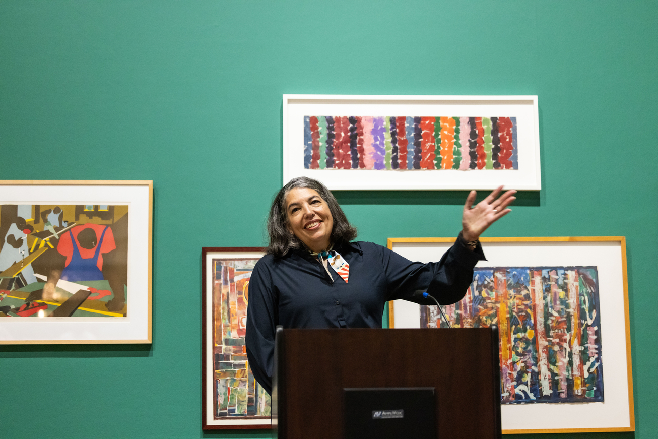 June 14, 2024: Gwendolyn DuBois Shaw, inaugural faculty director of Arthur Ross Gallery at the University of Pennsylvania in Philadelphia, Pa., giving remarks at the opening of “David C. Driskell and Friends: Creativity, Collaboration, and Friendship.” | Courtesy Arthur Ross Gallery