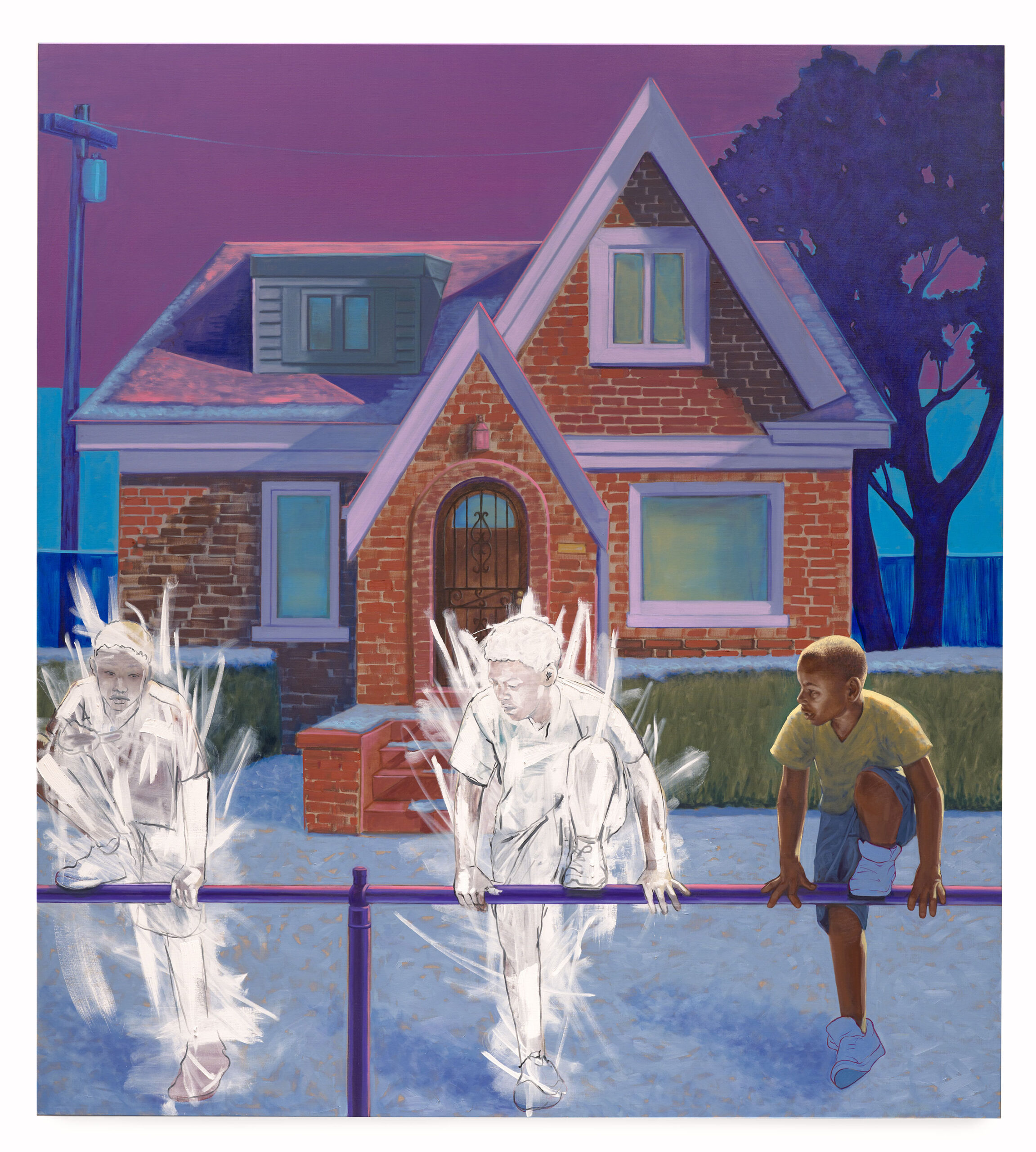 TITUS KAPHAR, “So vulnerable,” 2023 (oil on canvas, 120 x 108 inches / 304.8 x 274.3 cm). | © Titus Kaphar, Photo by Owen Conway