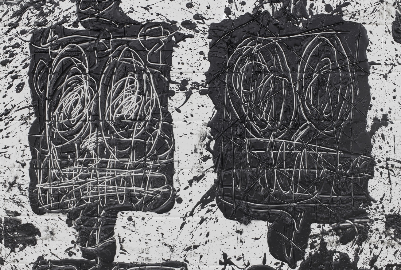RASHID JOHNSON, Detail of “Untitled Anxious Audience,” 2019 (ceramic tile, black soap, and wax, 159 × 180 × 3 inches / 403.9 × 457.2 × 7.6 cm). | Image courtesy the artist © Rashid Johnson, 2024. Photo by Martin Parsekian