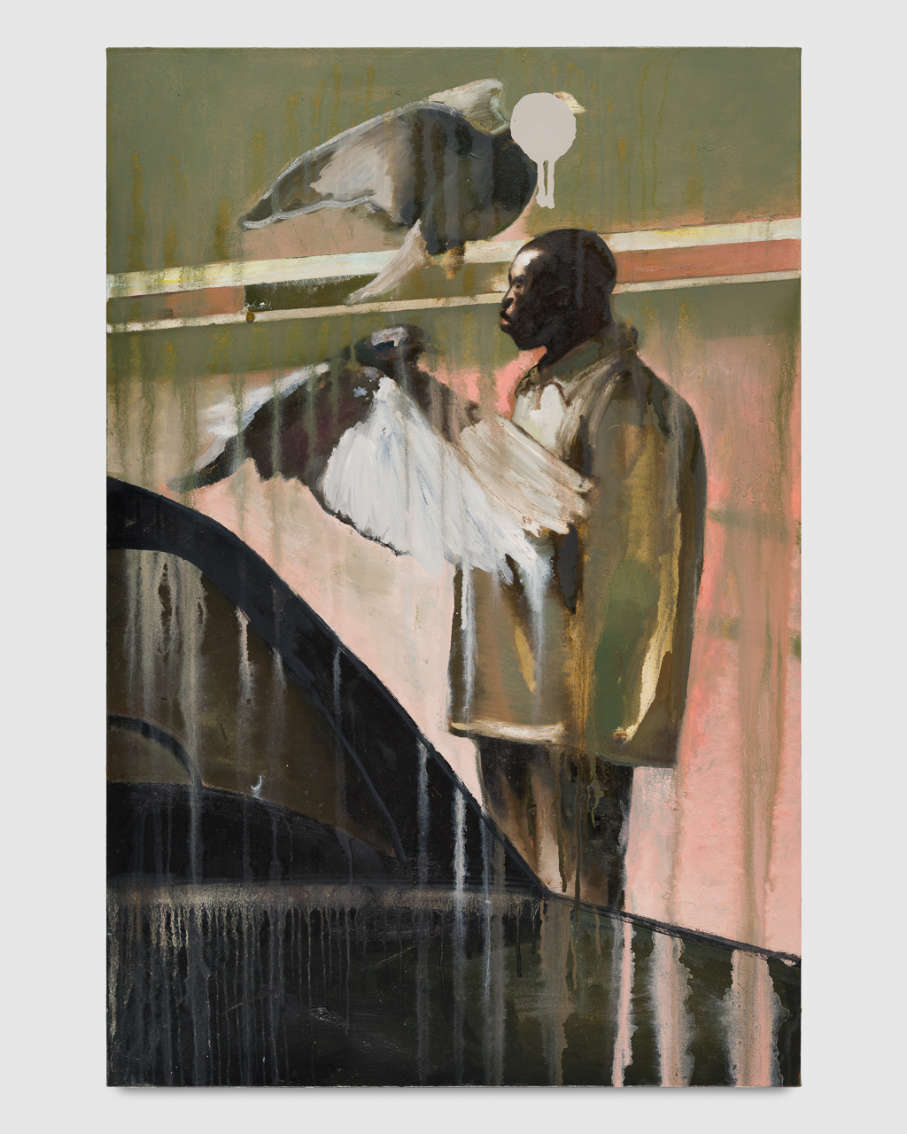 DEVIN B. JOHNSON, “In Flight,” 2024 (oil on linen, 36 x 24 inches / 91.4 x 61 cm). | © Devin B. Johnson. Courtesy the artist and Nicodim. Photo by Yubo Dong / ofstudio photography