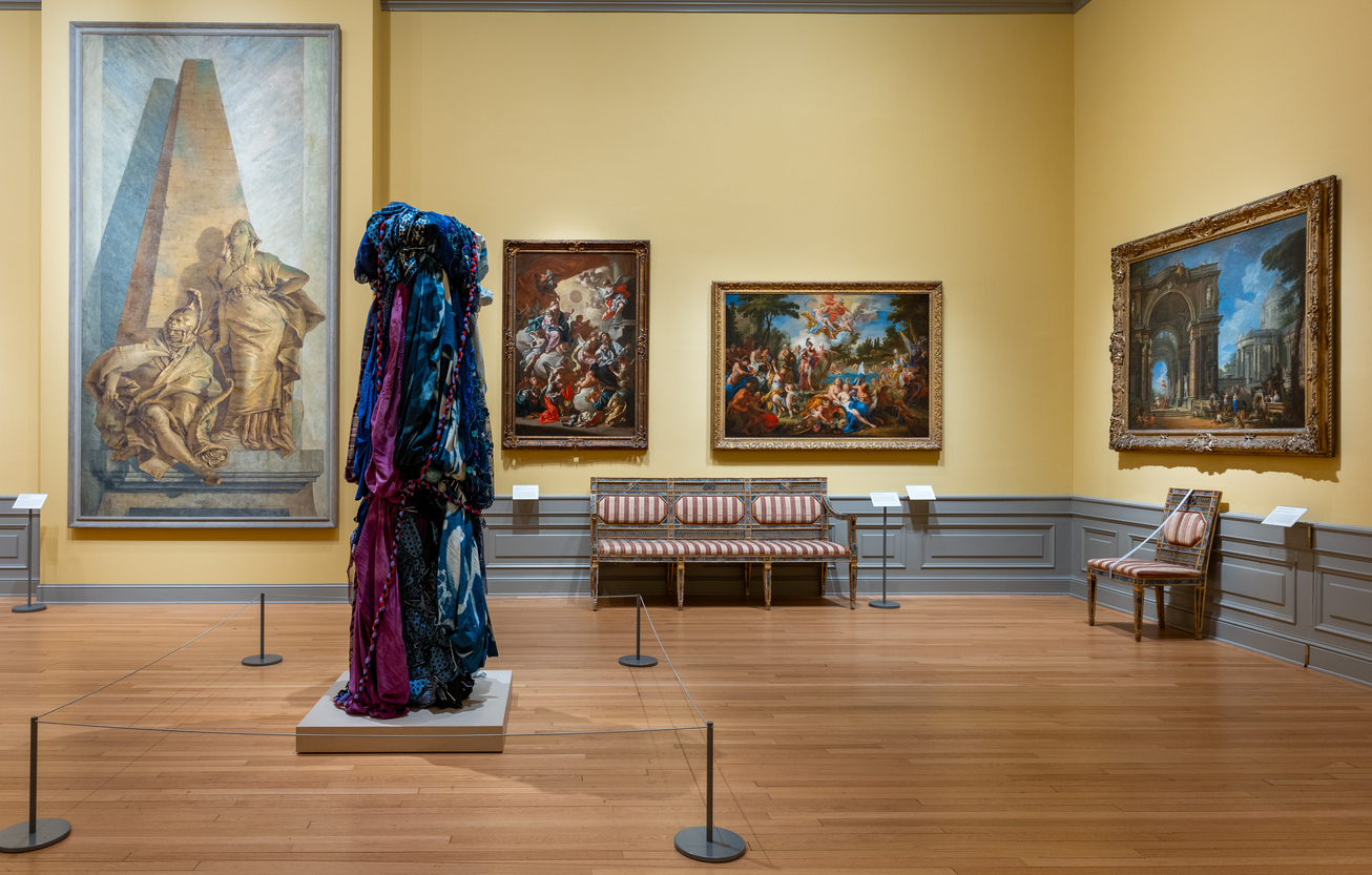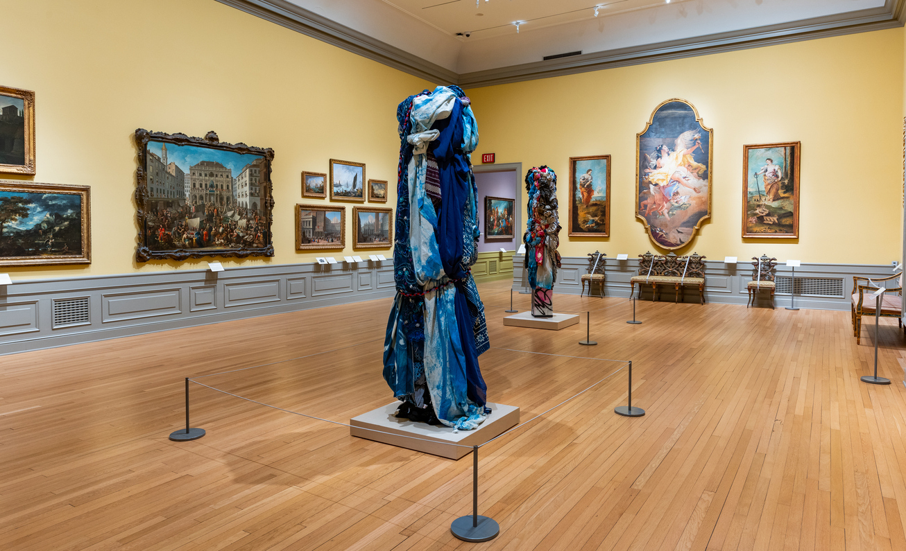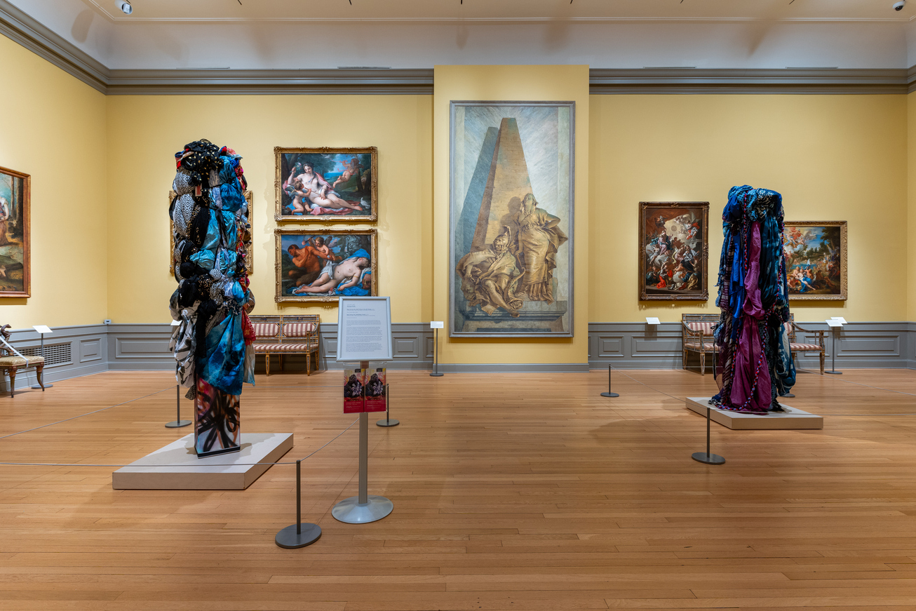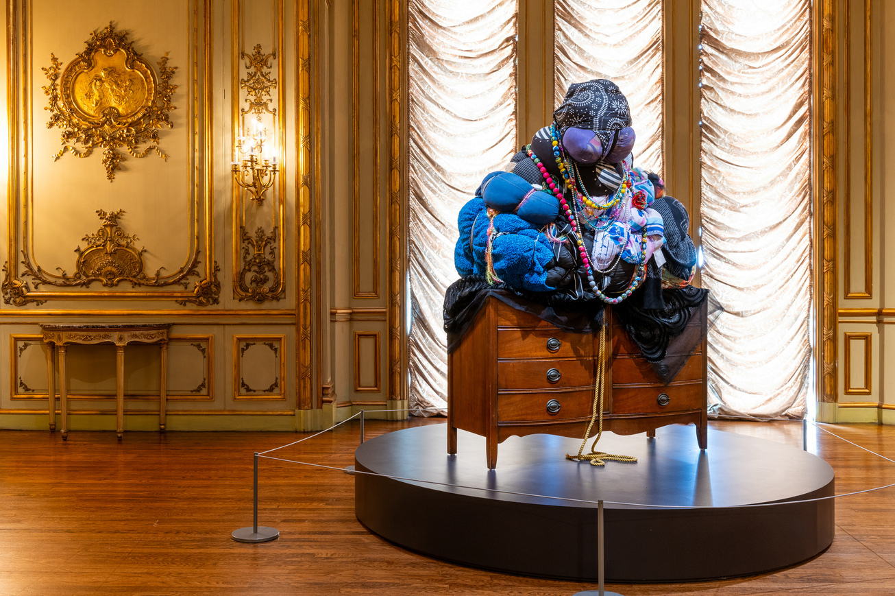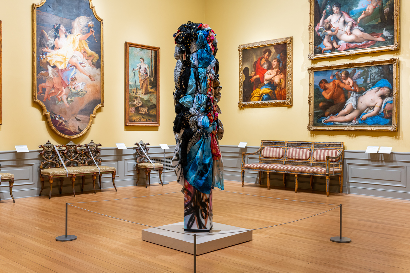 “Mitumba Deity II” by Shinique Smith installed in the Astor Salon gallery, The Ringling Museum of Art. | Courtesy Ringling Museum of Art