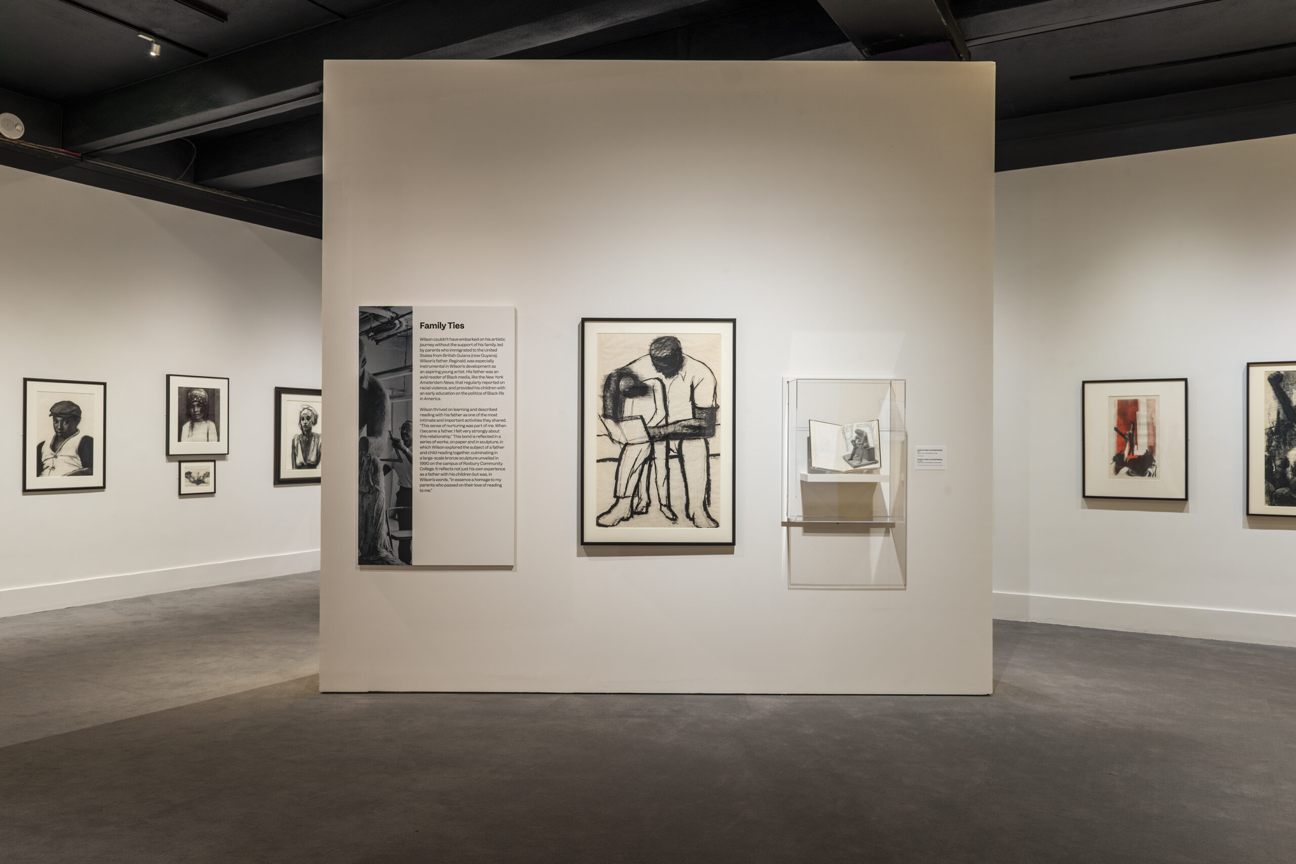 Installation view of “Witnessing Humanity: The Art of John Wilson,” Museum of Fine Arts, Boston, Lois B. and Michael K. Torf Gallery (Feb. 8-June 22, 2025). Shown at center, “Study for Father and Child Reading,” 1964