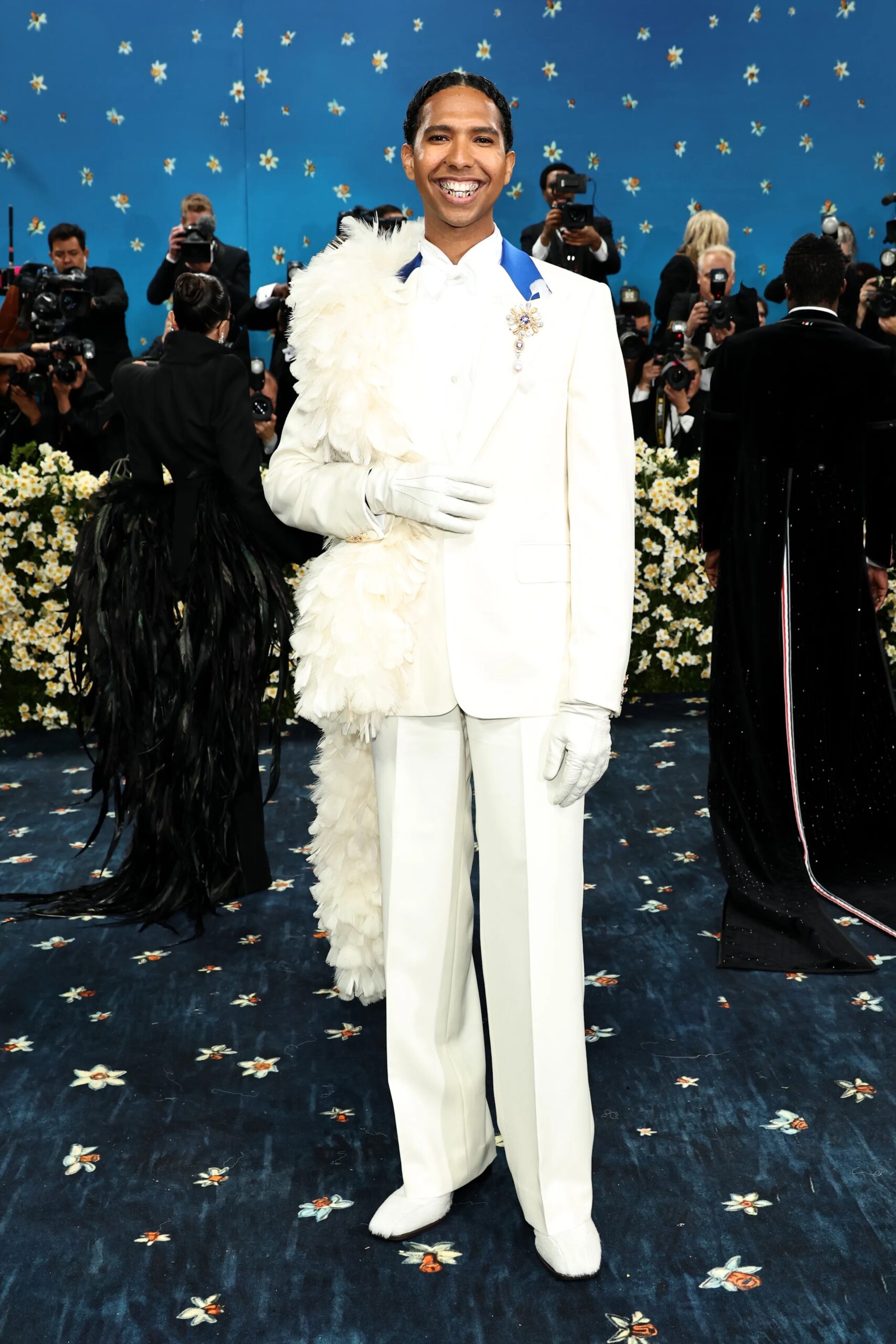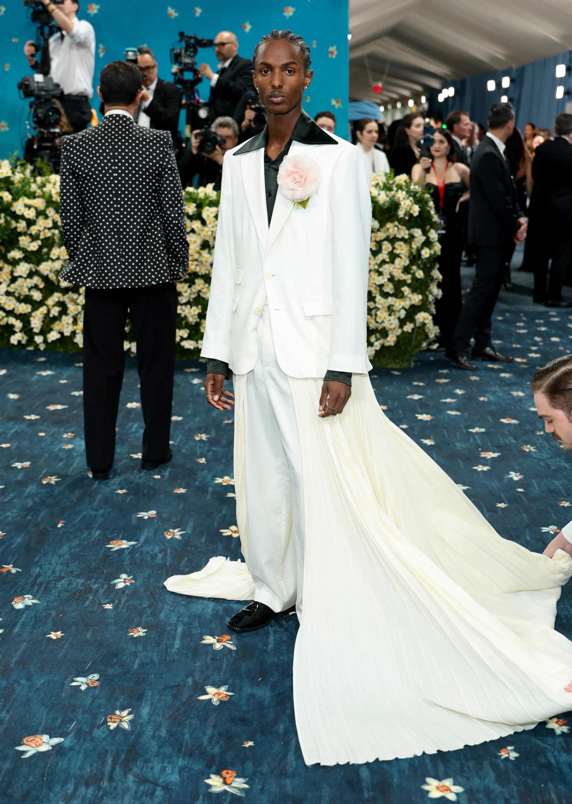 White daffodils grow in a field outside the artist’s Upstate New York studio and when he considered the history of Black dandyism and the timing of the exhibition and gala, he was struck by some of the symbolic parallels with the flower. The spring perennial signals the arrival of a new season and its genus references the Greek myth of Narcissus. Vogue spoke to Gavin about the project. In the report, Elise Taylor wrote: