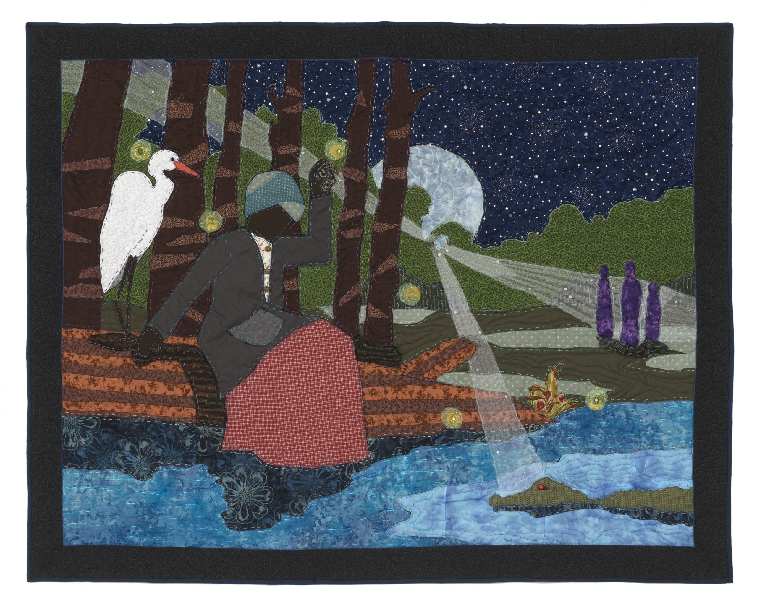 STEPHEN TOWNS (American, b. 1980), “Wade In the Water,” 2020 (natural and synthetic fabric, polyester and cotton thread, crystal glass, 39 x 46 inches). | © Stephen Towns, Courtesy Malik Jackson