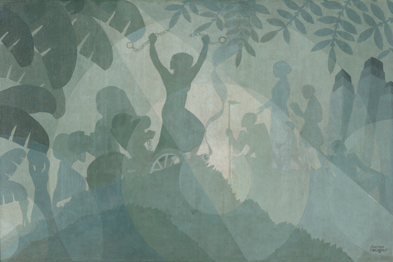 AARON DOUGLAS (American, 1899-1979, “Harriet Tubman,” 1931 (oil on canvas, 54 x 72 inches). | Bennett College, Greensboro, NC. © 2025 Heirs of Aaron Douglas / Licensed by VAGA at Artists Rights Society (ARS), NY