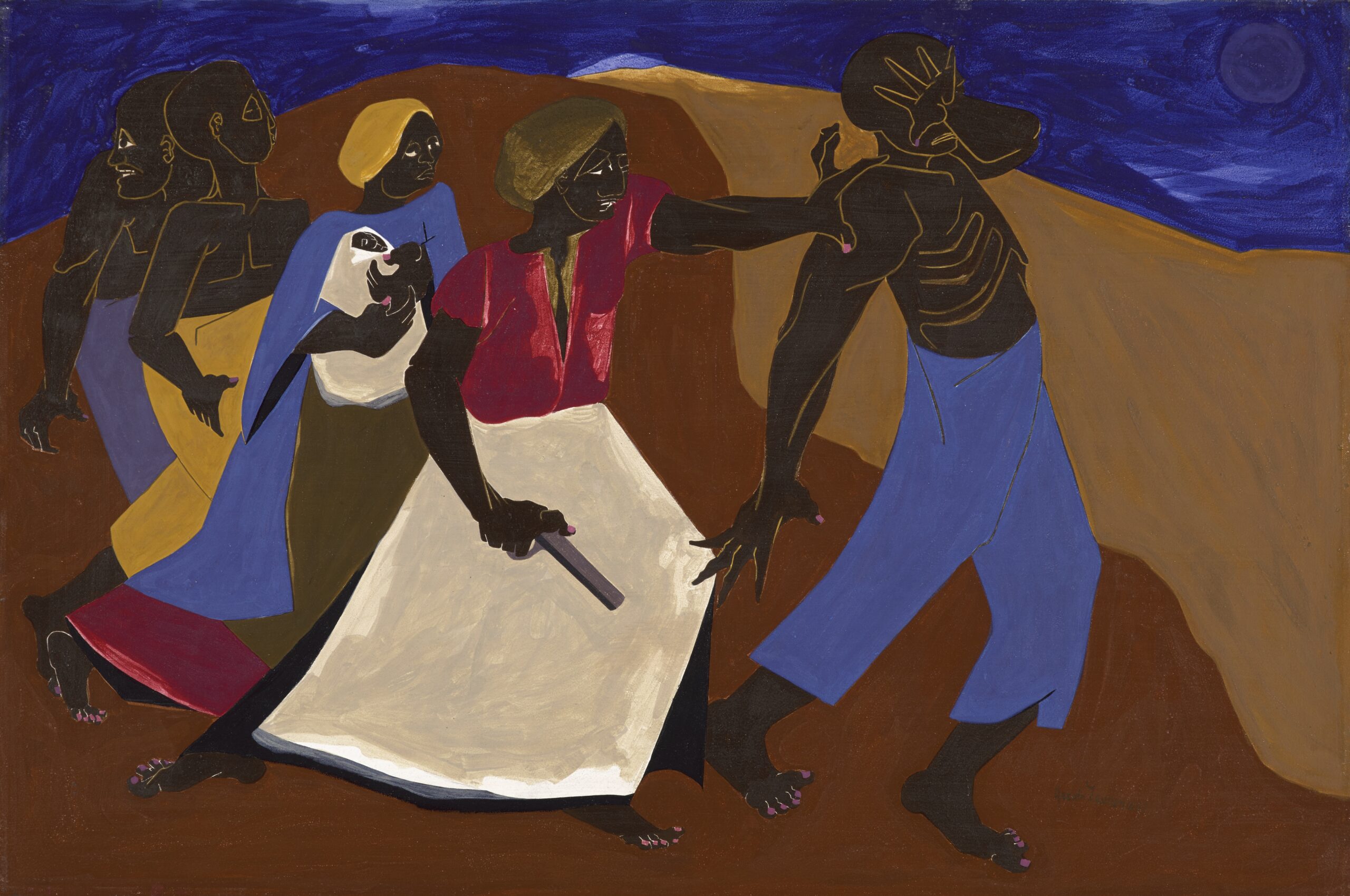 JACOB LAWRENCE, “Forward,” 1967 (tempera on masonite panel). | North Carolina Museum of Art. © 2025 The Jacob and Gwendolyn Knight Lawrence Foundation, Seattle. Licensed by VAGA at Artists Rights Society (ARS), NY