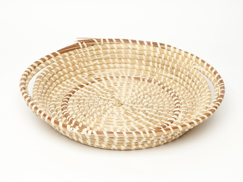 MAZIE LE COAXU, “Winnowing Basket,” circa 1981 (sweetgrass and pine needle, 2.681 x 14 x 13.5 inches). | McKissick Museum, University of South Carolina