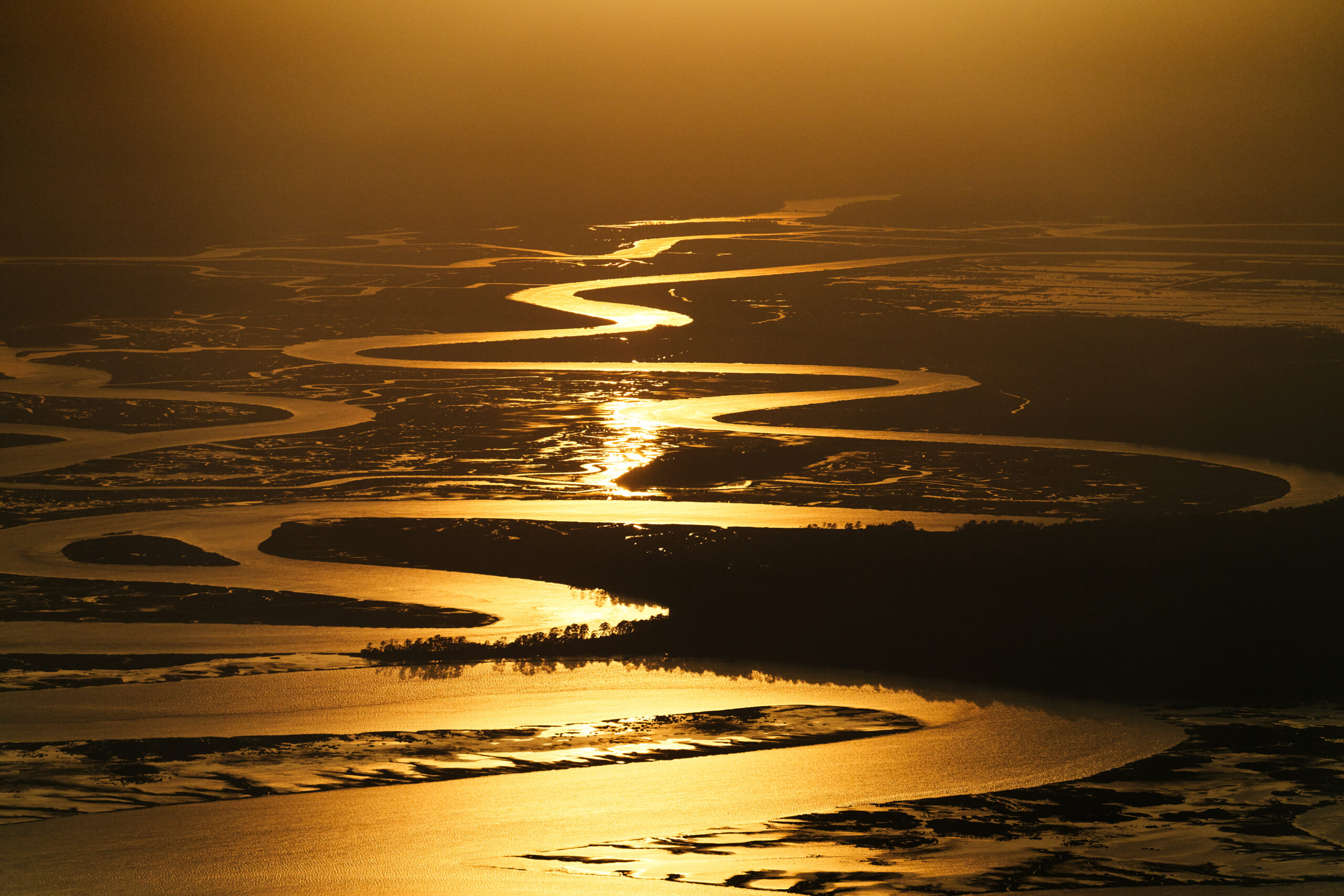 J HENRY FAIR American, b. 1959), “Sunset reflected in the Combahee River, view from St Helena Sound to the north,” 2022 (photograph). | © J Henry Fair