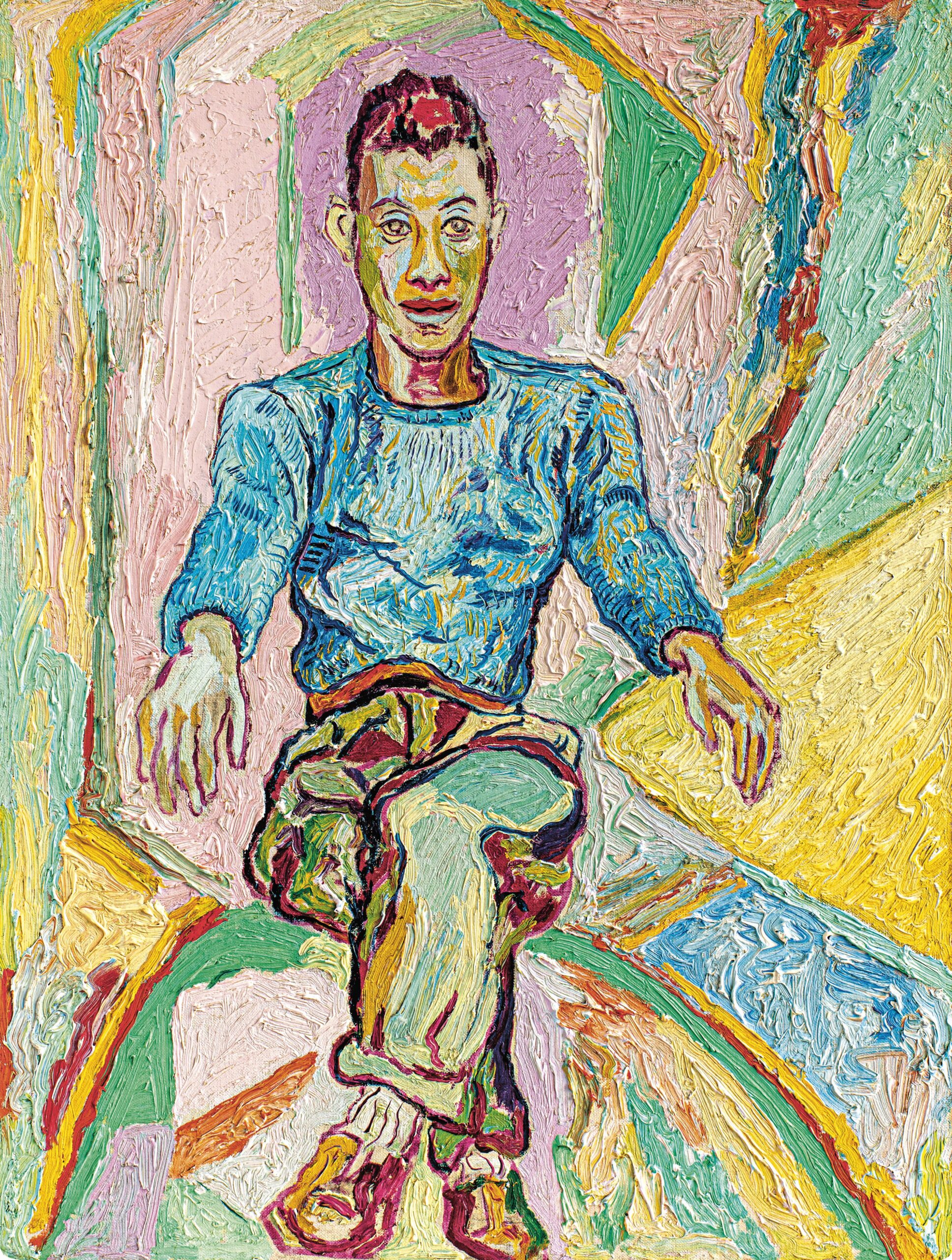 BEAUFORD DELANEY, “James Baldwin,” 1945-1950 (oil on canvas, 61 × 45.7 cm). | Collection of halley k harrisburg and Michael Rosenfeld, New York. © Estate of Beauford Delaney, by permission of Derek L. Spratley, Esquire, Court Appointed Administrator, Courtesy of Michael Rosenfeld Gallery LLC, New York. Photo Courtesy Michael Rosenfeld Gallery LLC, New York
