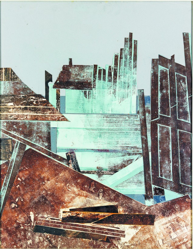 LUCE TURNIER, “Cabane de chantier, circa 1970 (collage, oil on paper, 92 × 74 cm). | Collection Jézabel Turnier-Traube. © Luce Turnier. Photo © Centre Pompidou/Janeth Rodriguez-Garcia