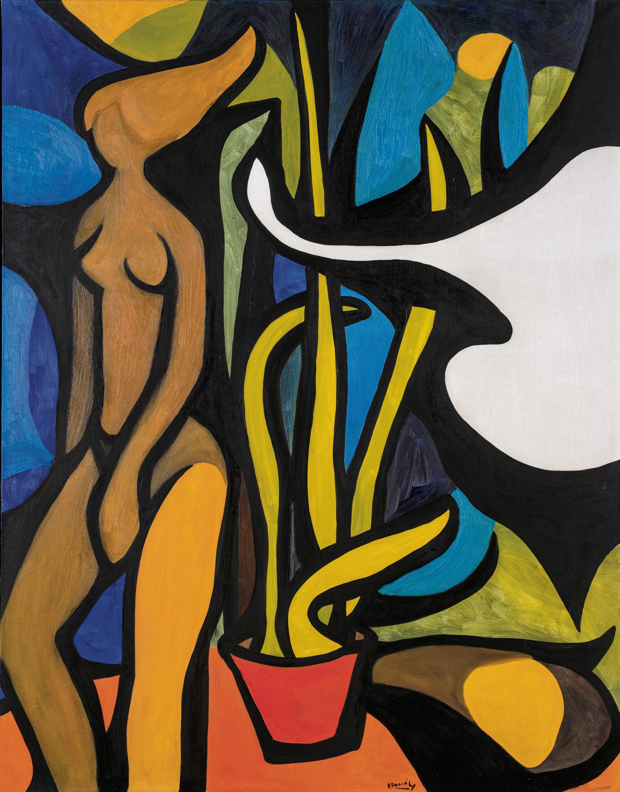 ROLAND DARCÉLY, “Léda et le cygne,” 1958 (oil on canvas, 149 × 117 cm). | Centre Pompidou, Musée national d’art moderne, Paris. Achat, 2023. AM 2023-179 All rights reserved. Photo © Centre Pompidou, MNAM-CCI/Janeth Rodriguez-Garcia/Dist. Grand Palais Rmn