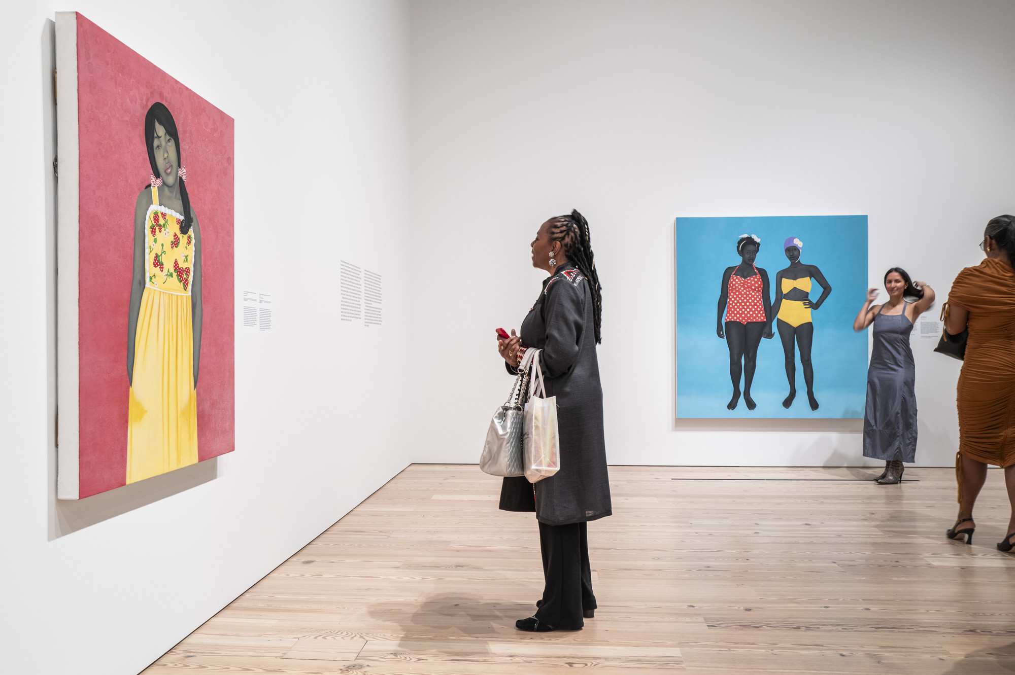 Installation view of “Amy Sherald: American Sublime,” Whitney Museum of American Art, New York, N.Y. (April 9-August 10, 2025). Shown, from left, “They Call Me Redbone, but I’d Rather Be Strawberry Shortcake,” 2009; “The Bathers,” 2015. | Photo by Matthew Carasella