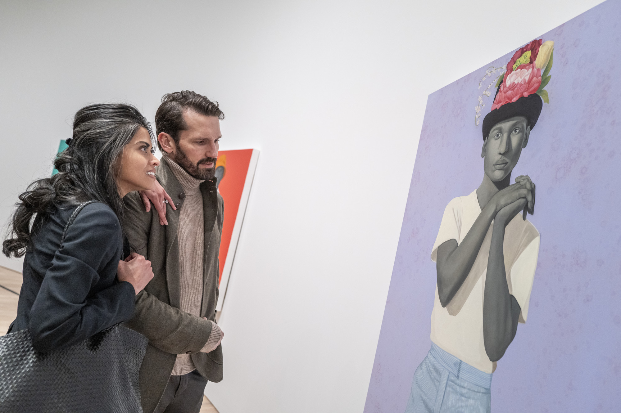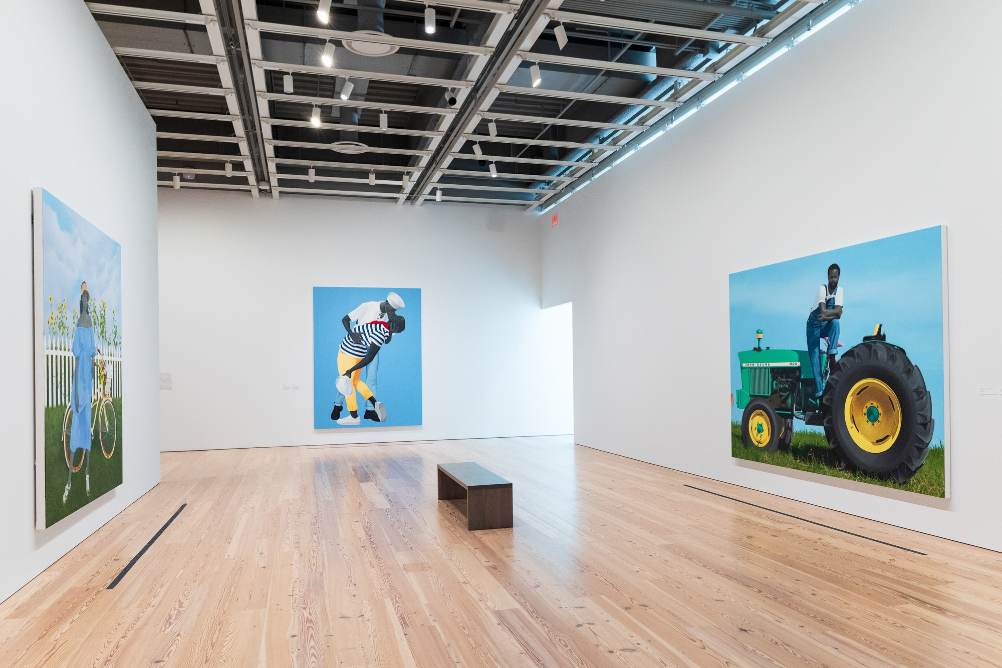 Sherald is one of America’s most prominent contemporary artists working in figuration. The exhibition is anchored by some of her greatest hits, including portraits of First Lady Michelle Obama (2018) and Breonna Taylor (2020); “For love, and for country” (2022), which re-interprets Alfred Eisenstaedt’s famous 1945 photograph of a U.S. Navy sailor kissing a woman in Times Square on “V-J Day”; and “Ecclesia (The Meeting of Inheritance and Horizons)” (2024), a new three-panel, triple portrait influenced by the work of filmmaker Wes Anderson. In addition, “If You Surrendered to the Air, You Could Ride It” (2020) is being shown for the first time since it was acquired by the Whitney Museum five years ago.