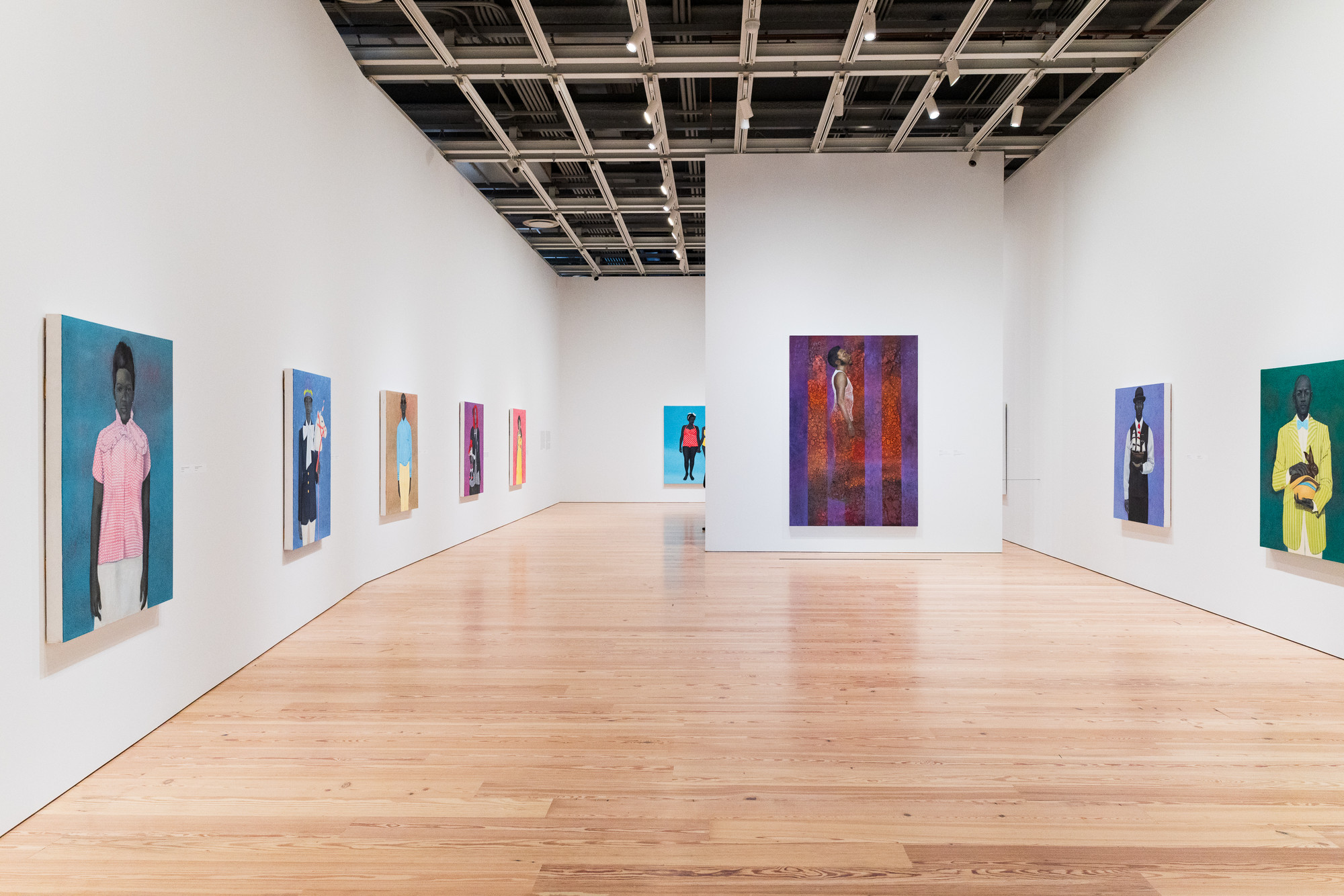 Installation view of “Amy Sherald: American Sublime,” Whitney Museum of American Art, New York, N.Y. (April 9-August 10, 2025). Shown, from left, “Well Prepared and Maladjusted,” 2008; “It Made Sense…Mostly in Her Mind,” 2011; “The Boy with No Past,” 2014; “Freeing herself was one thing, taking ownership of that freed self was another,” 2013; “They Call Me Redbone, but I’d Rather Be Strawberry Shortcake,” 2009; “The Bathers,” 2015; “Hangman,” 2007; “Guide Me No More,” 2011; “The Rabbit in the Hat,” 2009. Photograph by Tiffany Sage/BFA.com. © BFA 2025