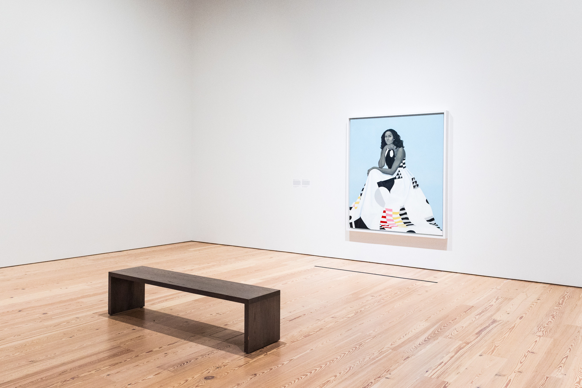 AMY SHERALD, “Michelle LaVaughn Robinson Obama,” 2018 (oil on linen, 72 1/8 × 60 1/8 × 2 3/4 inches / 183.1 × 152.7 × 7 cm). | National Portrait Gallery, Smithsonian Institution. The National Portrait Gallery is grateful to the following lead donors for their support of the Obama portraits: Kate Capshaw and Steven Spielberg; Judith Kern and Kent Whealy; Tommie L. Pegues and Donald A. Capoccia. Courtesy Smithsonian National Portrait Gallery