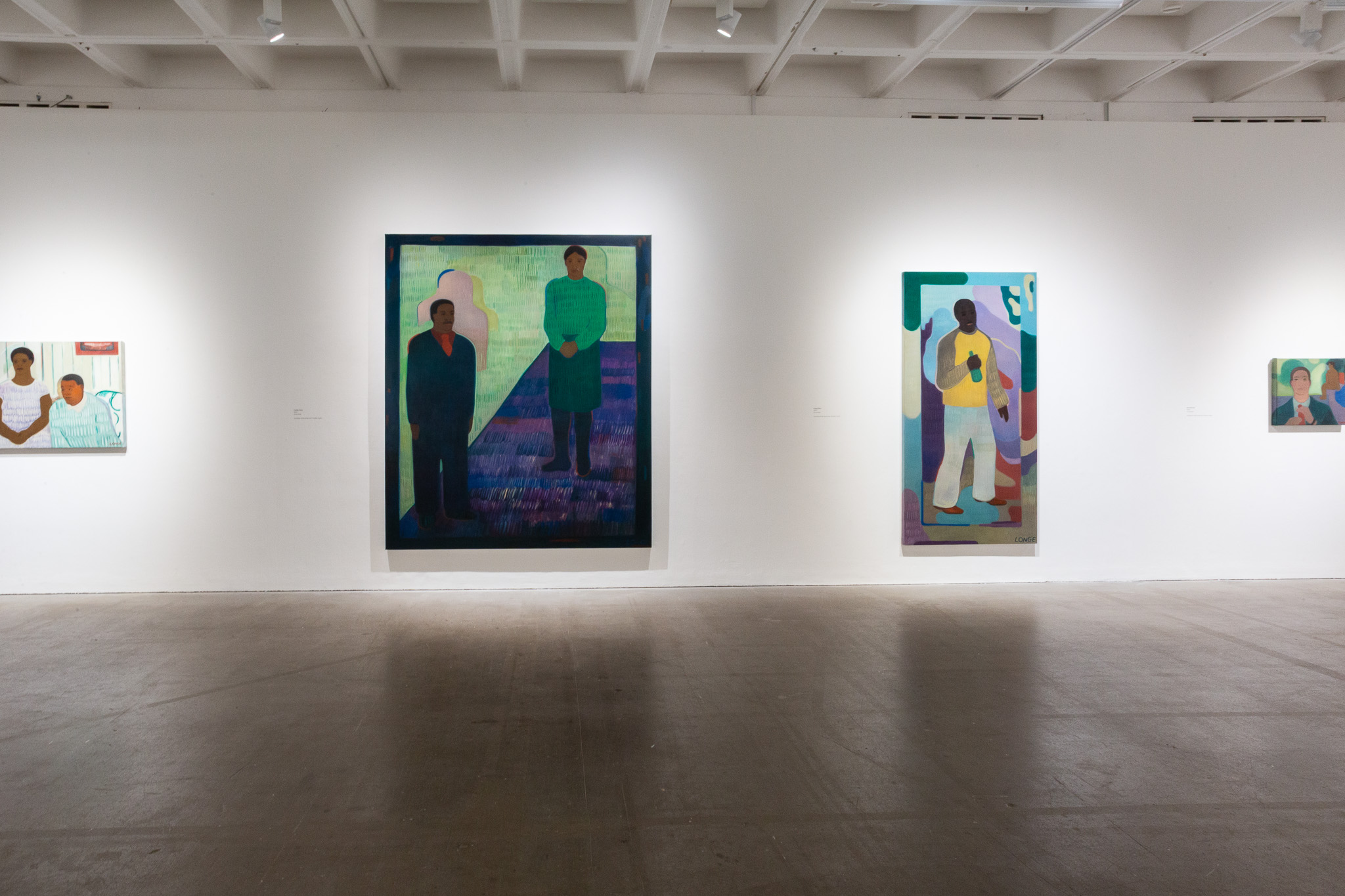 Large and small works are featured in “Sahara Longe: The Other Side of the Mountain,” the first solo institutional exhibition of the artist. The show is on view at Arnolfini, a center of interdisciplinary contemporary arts in Bristol, UK, that has been showcasing artists from around the world since 1961. Longe was born in London, UK, where she lives and works. Her figures are rendered in simplified forms in a deep-toned palette derived from her training at Charles H. Cecil Studios in Florence, Italy, where she studied classical portraiture working with a limited selection of five colors.