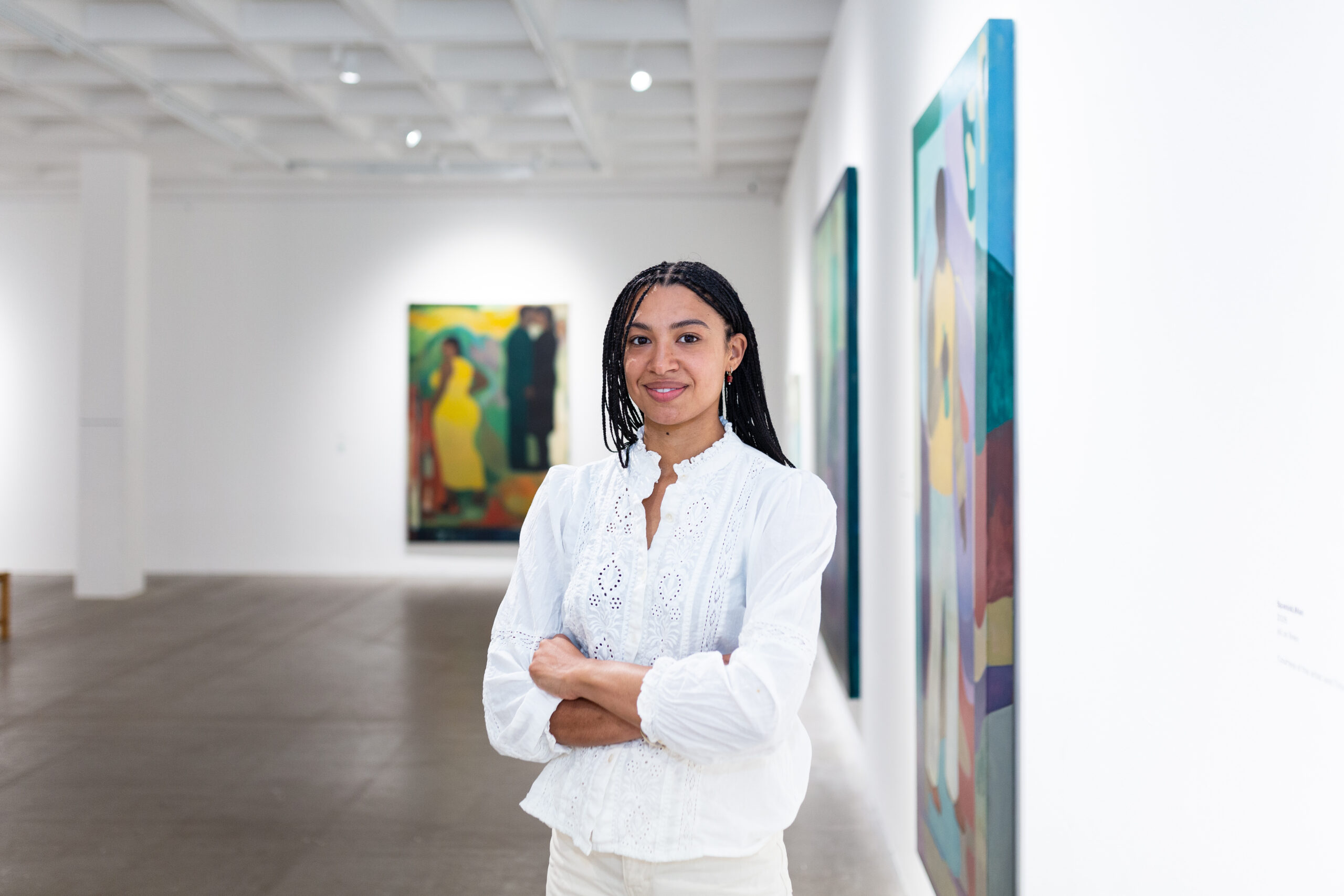 Sahara Longe, shown at her first institutional solo exhibition, “The Other Side of the Mountain,” at Arnolfini in Bristol, UK. | Photo: Lisa Whiting Photography for Arnolfini. All rights reserved