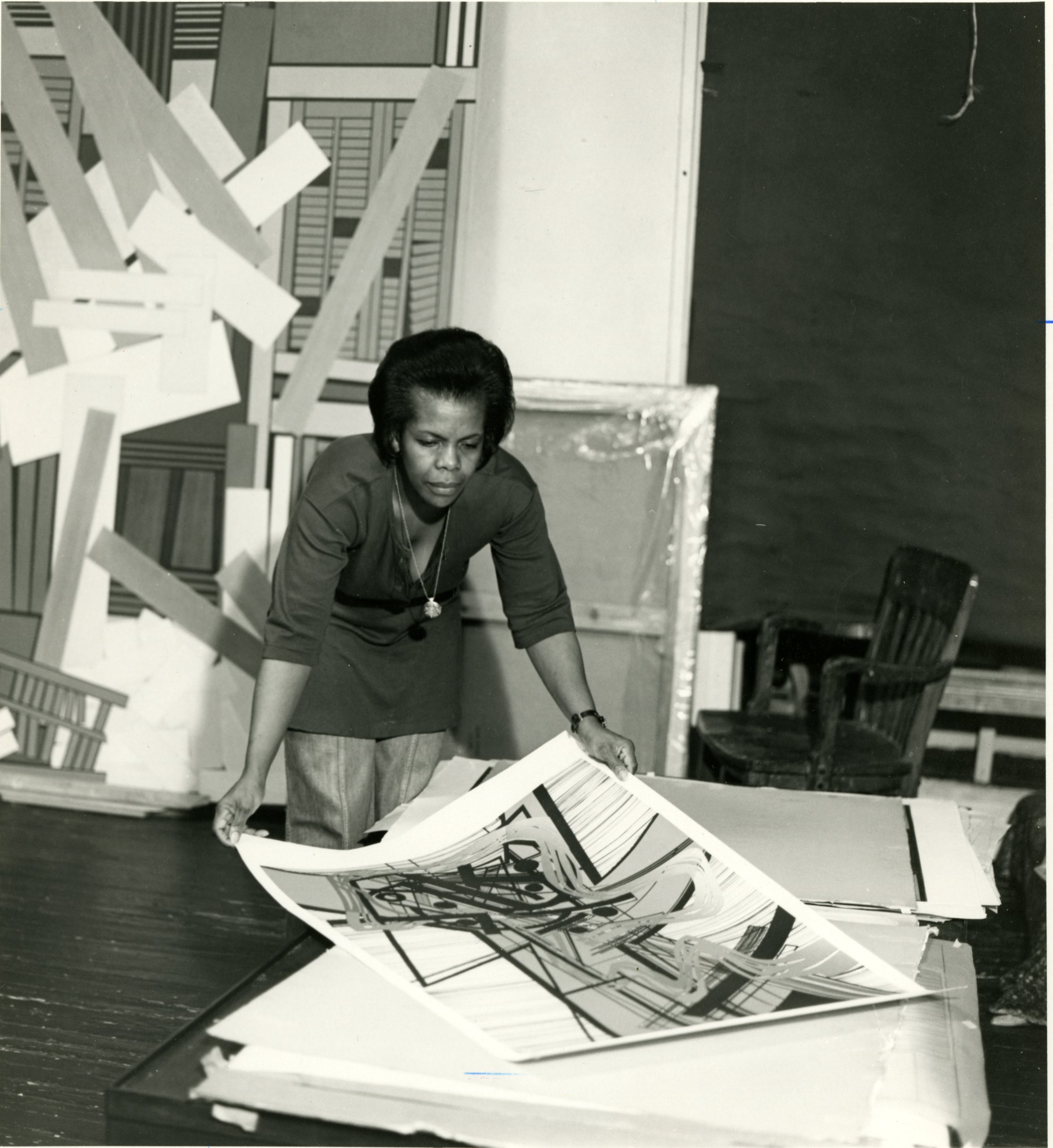 Pusey was known for her geometric abstraction at a time when most Black artists were focused on figuration, producing realistic images reflecting Black experiences. Her flat, shapely forms referenced the body and her hard-edged compositions evinced building materials, construction, and destruction symbolizing urban landscapes and social change, and also exploring musical themes.
