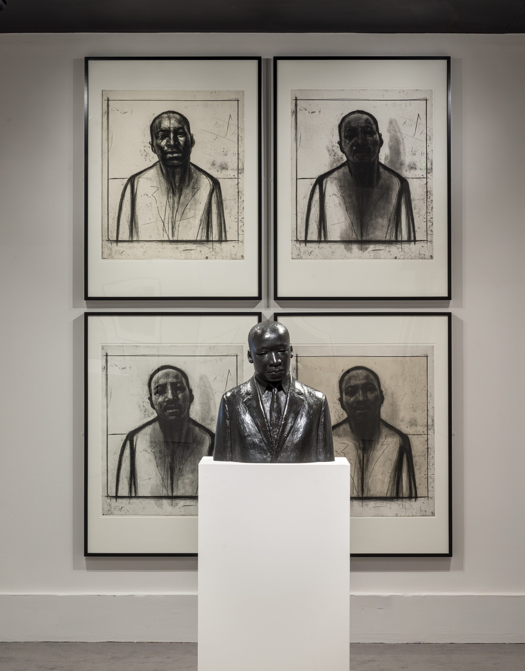 Installation view of “Witnessing Humanity: The Art of John Wilson,” Lois B. and Michael K. Torf Gallery, Museum of Fine Arts, Boston (Feb. 8-June 22, 2025). Shown, foreground, JOHN WILSON (American, 1922–2015), “Martin Luther King, Jr. (Capitol maquette),” 1985 (bronze, Overall (height): 45.7 cm / 18 inches); background: | Photo © Museum of Fine Arts, Boston